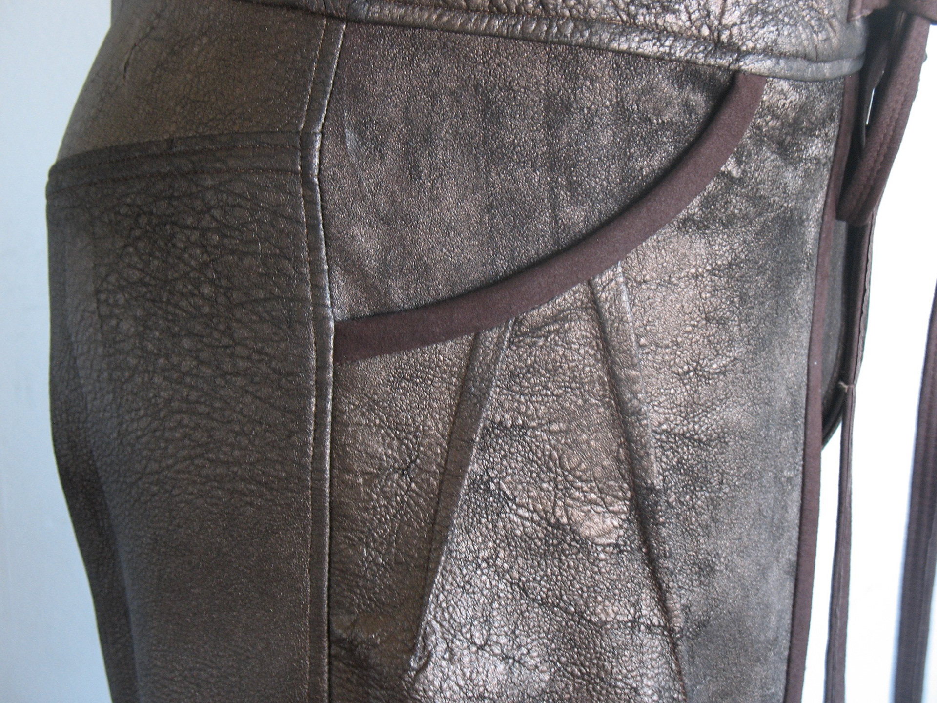 • Front ties at fly cinch waist