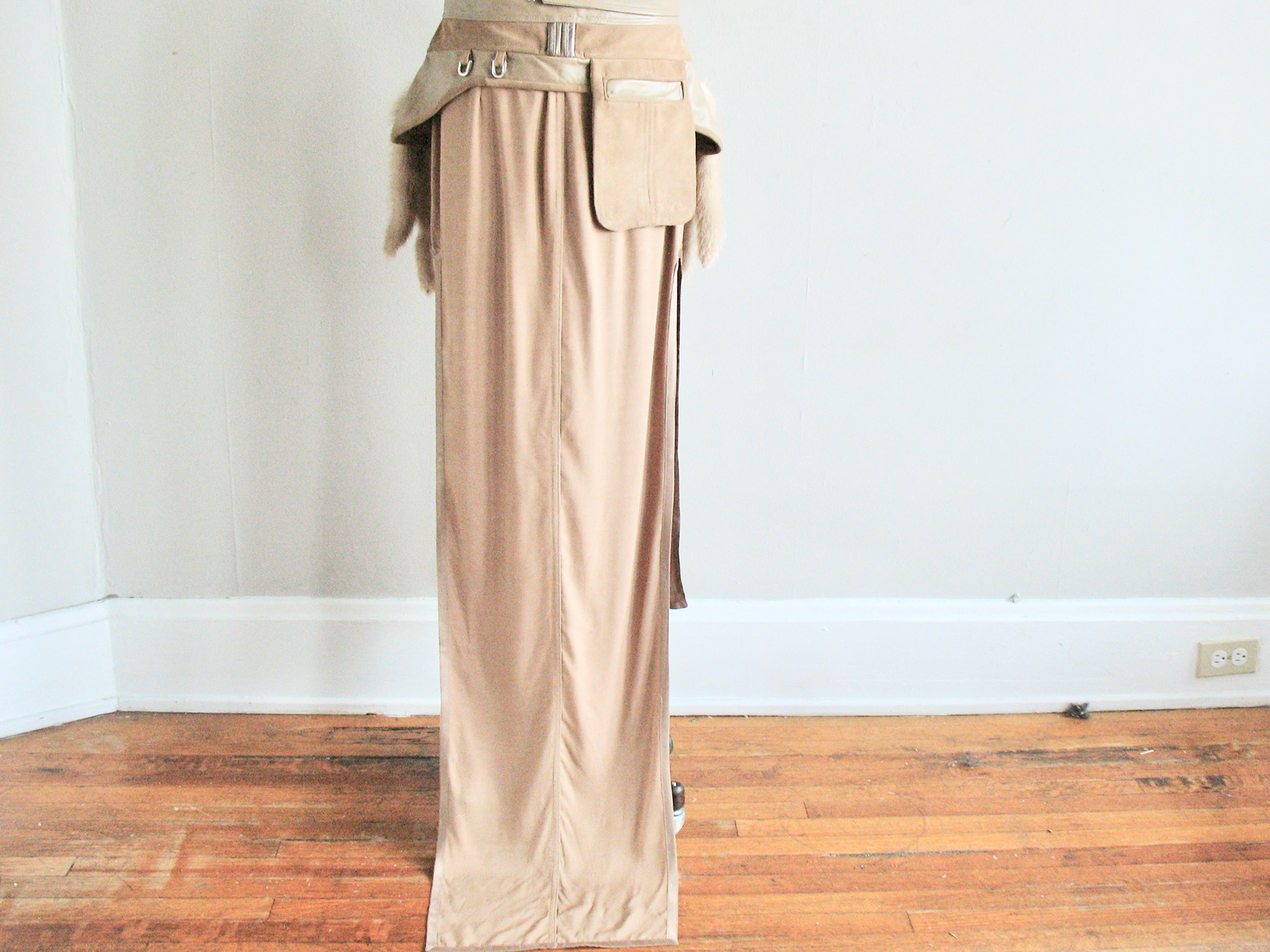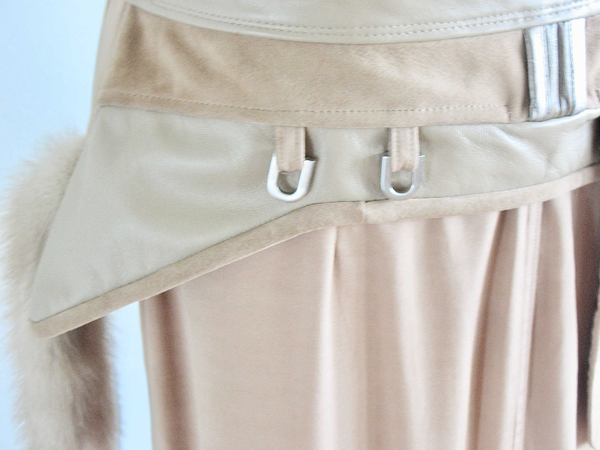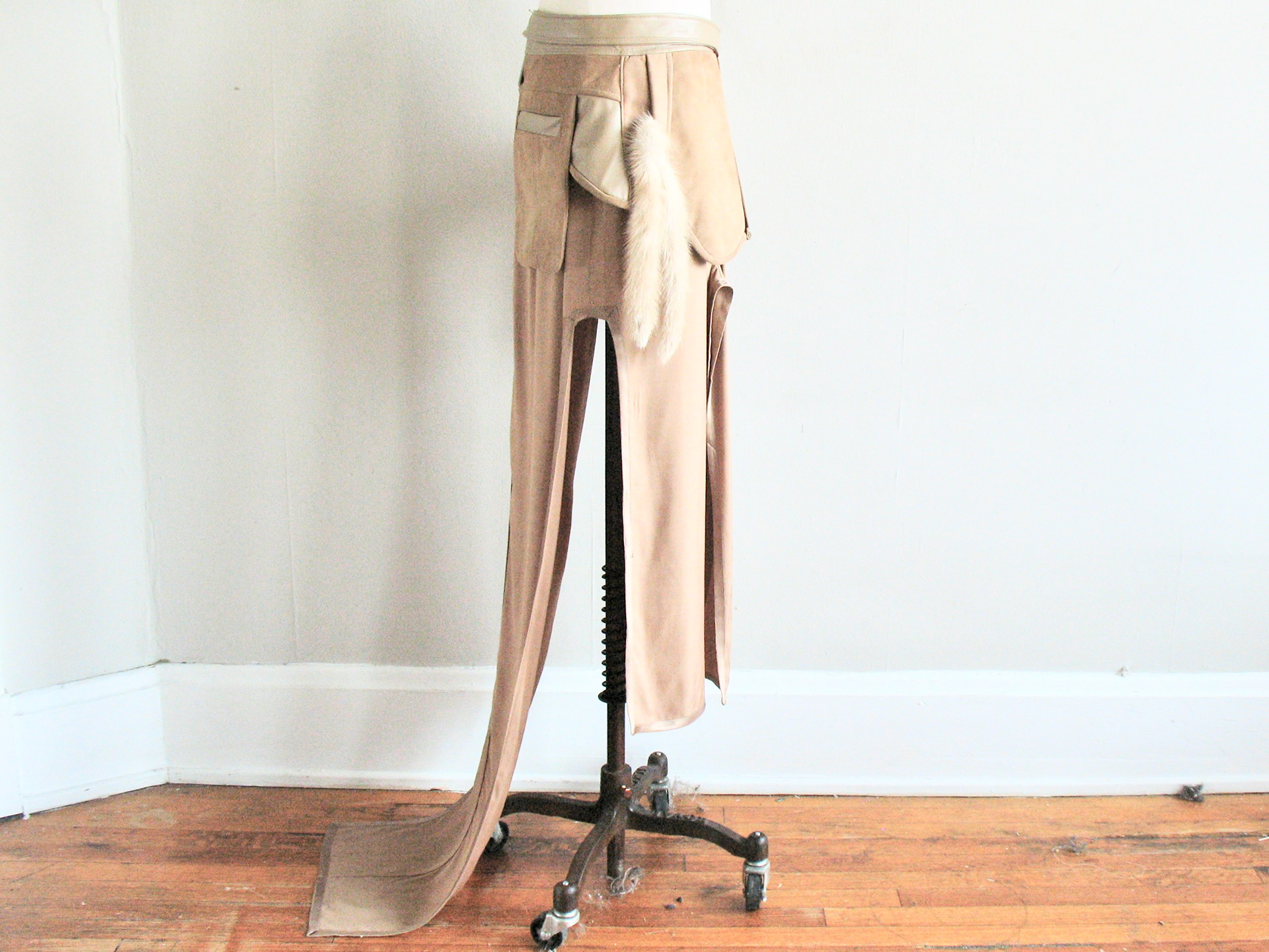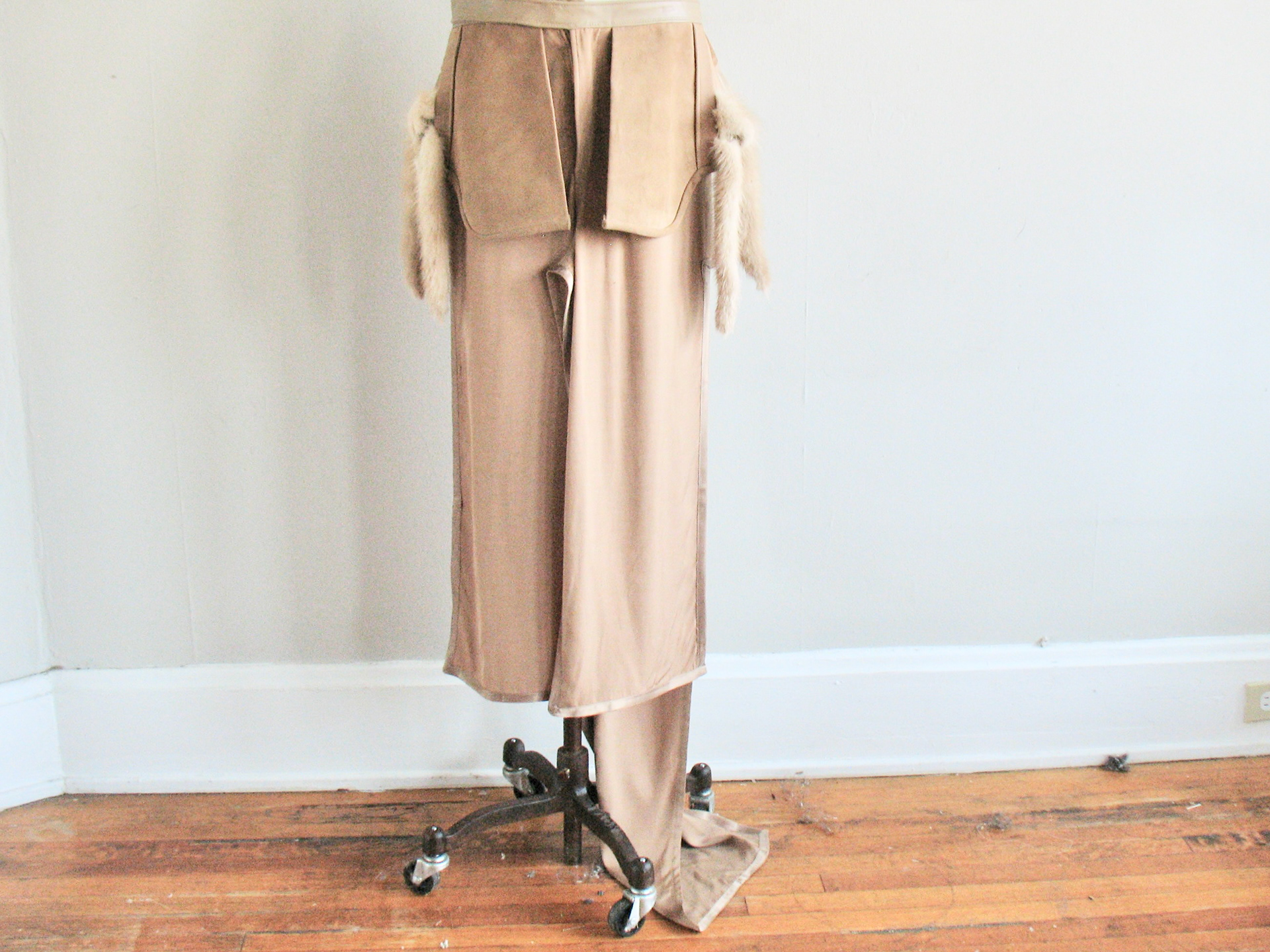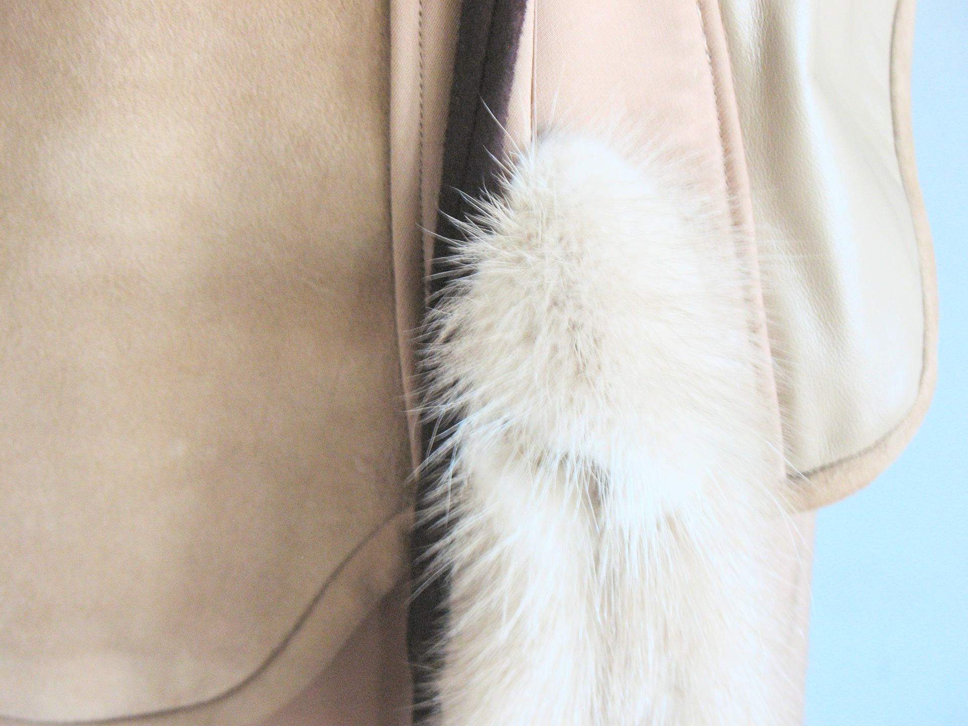 100% Silk, Calf Leather and Mink Tail accents