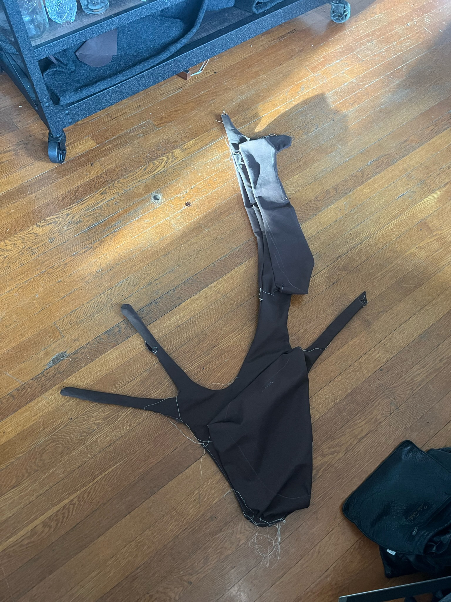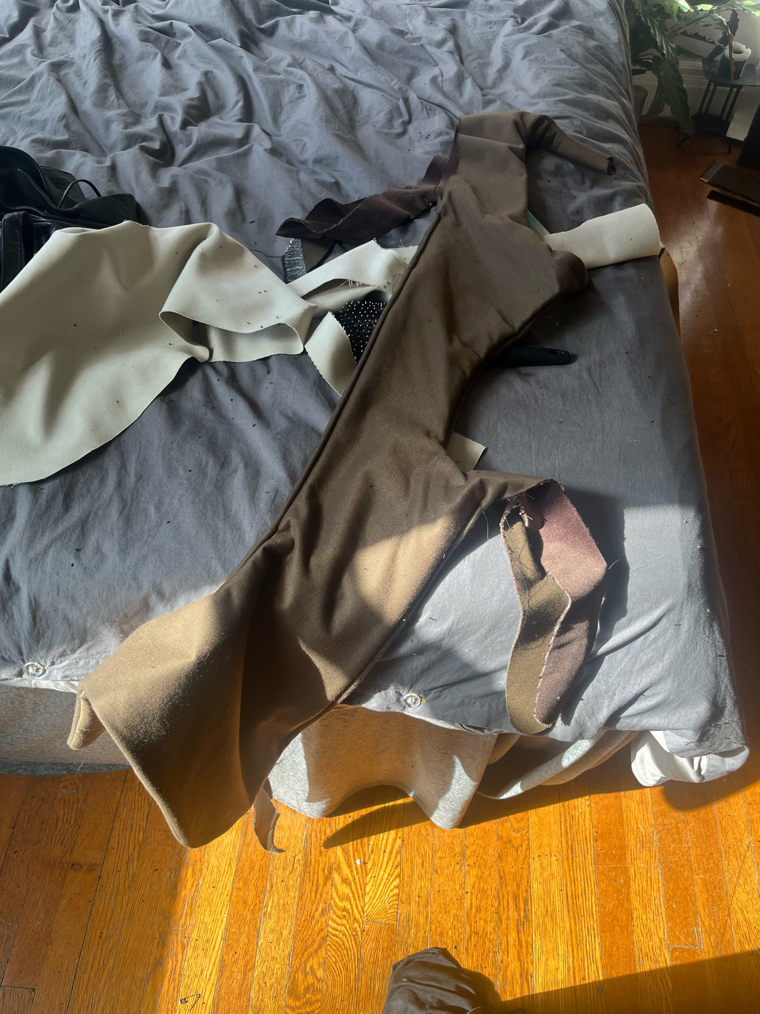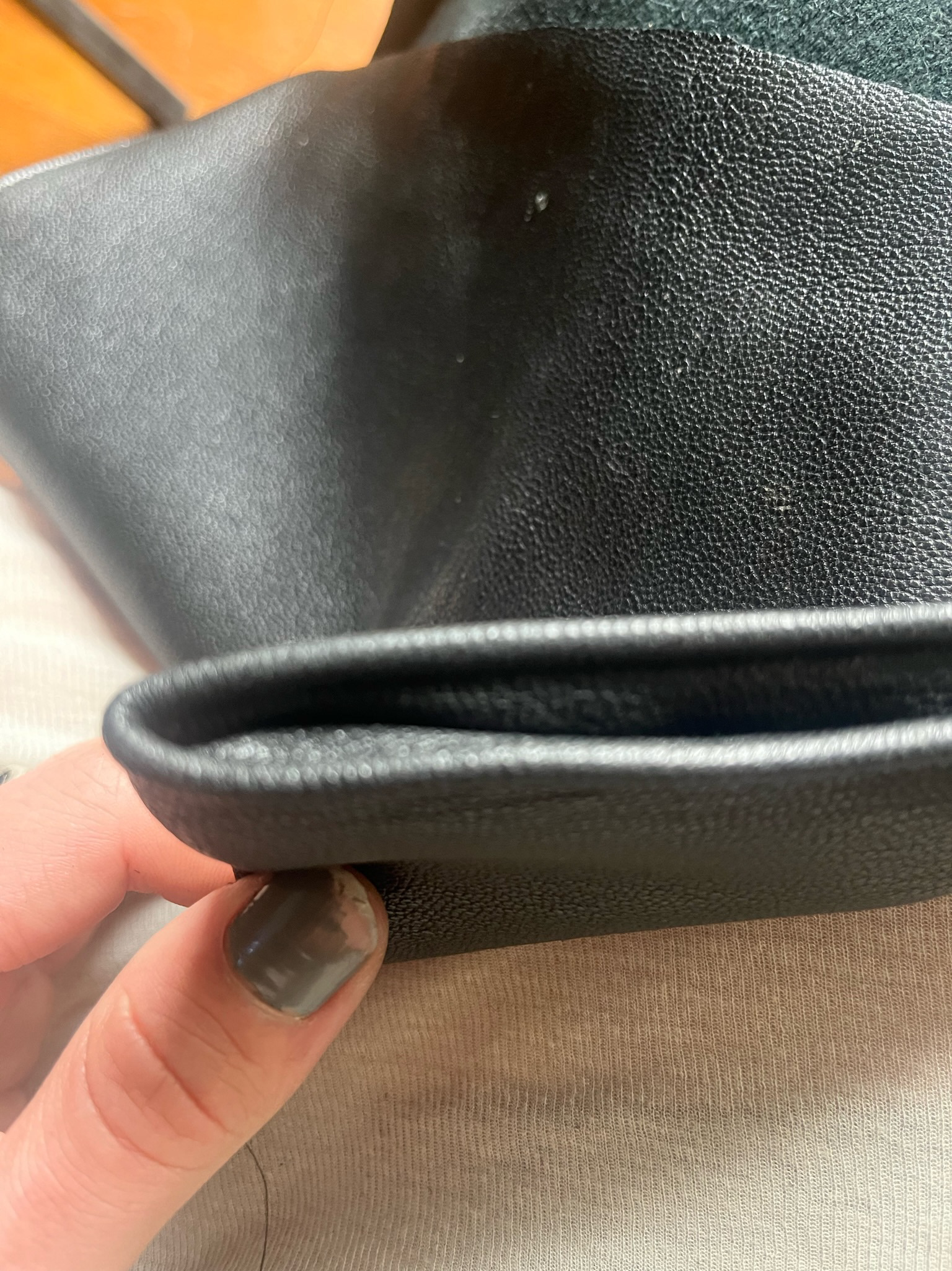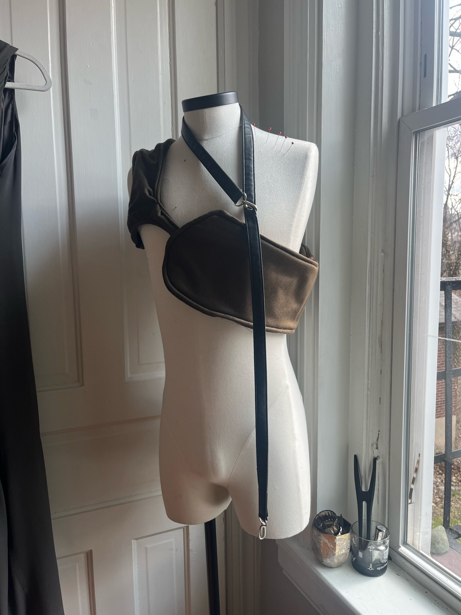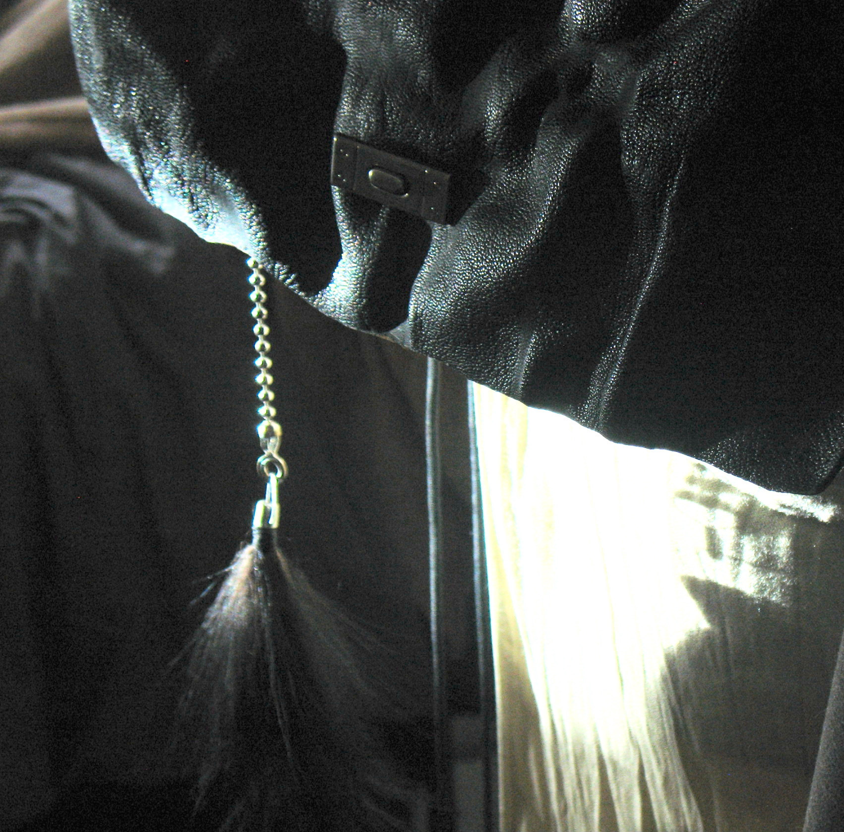 Inspired by photos of old, worn, and forgotten leather, this bag is comprised of a recycled 1930's bomber jacket.
